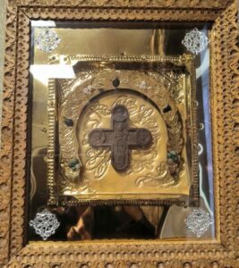 Святая икона была обретена в лесу крестьянской девочкой Анной. Образ в виде креста излучал необычайно яркий свет между деревьями. Местные жители построили на месте чудесного явления иконы церковь во имя Пресвятой Богородицы, где поставили обретенную икону. С этого времени святой образ Божией Матери был прославлен различными чудотворениями.
