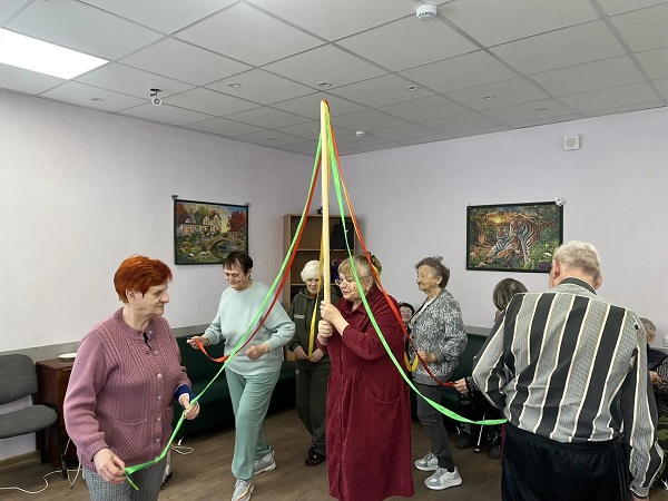 Священник поздравил присутствующих с великим праздником Воскресения Христова, рассказал об истории и событиях праздника, вместе с пожилыми людьми радовался стихам и песням, активно участвовал в играх и развлечениях.