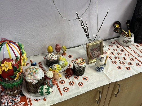На прощание о. Владимир вручил каждому из присутствующих традиционные пасхальные угощения: освященные куличи и крашеные яйца/