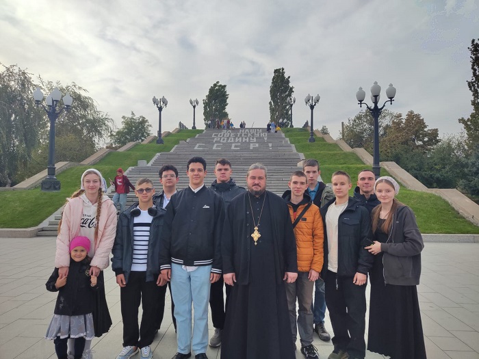 Затем, почтили память погибших воинов на главной высоте России – Мамаевом Кургане, обойдя все знаковые места мемориального комплекса.