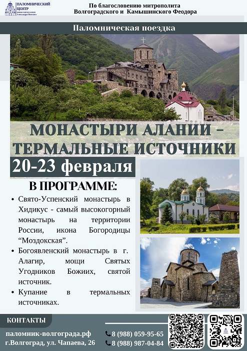 К святыням Алании Опубликовано 16.02.2026 paraskeva-press Паломнический центр Волгоградской епархии предлагает совершить первую в наступившем году поездку к святыням республики Северная Осетия – Алания. Маршрут полюбился волгоградцам и обещает новые незабываемые впечатления.. Понравился материал?ПоделитьсяВКонтактеОдноклассникиTwitterМой МирGoogleTumblr
