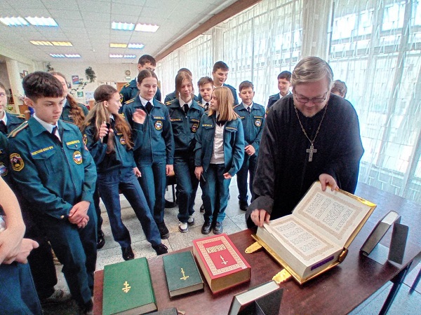 6 марта в рамках мероприятий посвященных Дню Православной книги, а так же 150- летию перевода Библии на русский язык, в библиотеке №17 им. М.А. Шолохова иерей Виктор Иващенко встретился с семиклассниками 56-й школы.