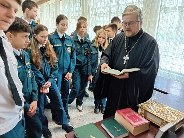 создавалась, о переводах Библии и современных исследованиях текстов Священного Писания. Познакомил подростков с различными изданиями Библии, представленными на выставке, организованной в стенах библиотеки.