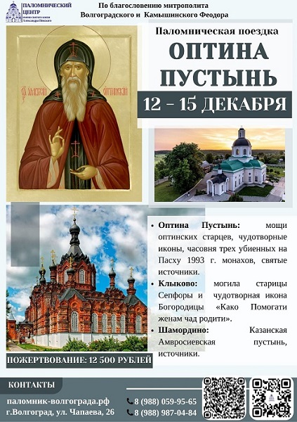 Любимые маршруты в декабре Опубликовано 07.12.2025 paraskeva-press Паломнический центр Волгоградской епархии приглашает в поездки: Понравился материал?ПоделитьсяВКонтактеОдноклассникиTwitterМой МирGoogleTumblr
