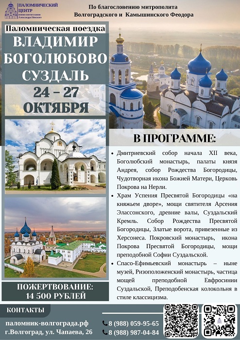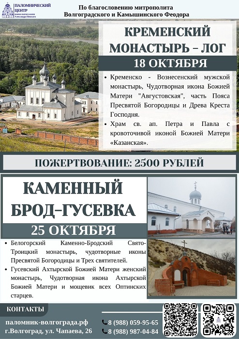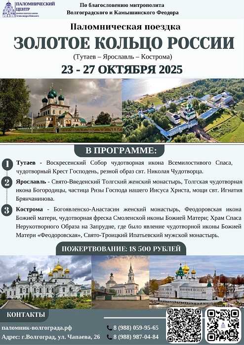Паломнический центр Волгоградской епархии приглашает Опубликовано 14.10.2025 paraskeva-press Погожие дни октября зовут в паломничество Выбирайте маршрут по России и родному краю. Тел. 8 988 059 95 65 8 988 987 04 84 Понравился материал?ПоделитьсяВКонтактеОдноклассникиTwitterМой МирGoogleTumblr