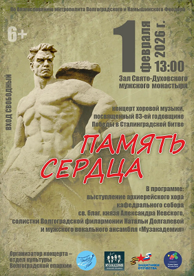 По благословению Митрополита Волгоградского и Камышинского Феодора, 1 февраля в зале Свято-Духовского мужского монастыря состоится Патриотический хоровой концерт «Память сердца».