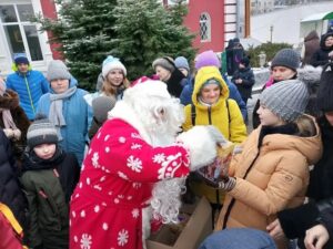 Дети порадовали Дедушку Мороза колядками и песенками. Все маленькие участники получили сладкие рождественские подарки.