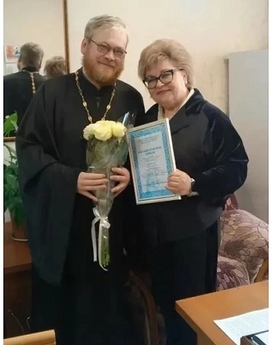 Поздравление и благодарственное письмо правящего архиерея за сотрудничество в области духовно-нравственного воспитания подрастающего поколения Галине Викторовне передал помощник руководителя отдела религиозного образования и катехизации епархии иерей Виктор Иващенко.
